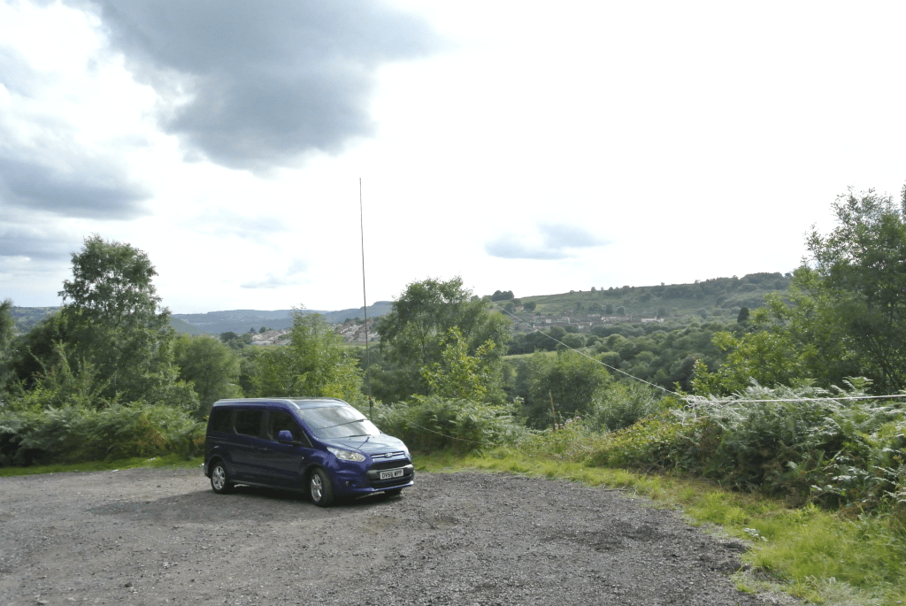 うろうろしたあげく、ようやくB4255道路の脇道をあがったところに空き地を見つけたので、ここにアンテナを立てることにしました。
