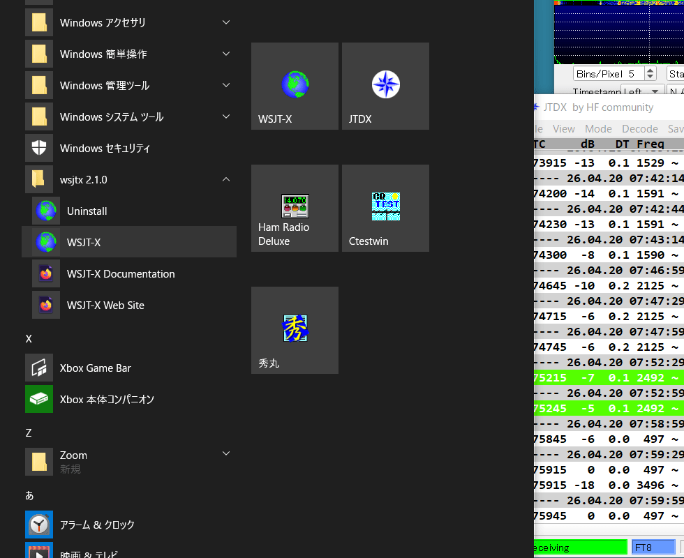 →WSJT-Xが個人コールで起動する。