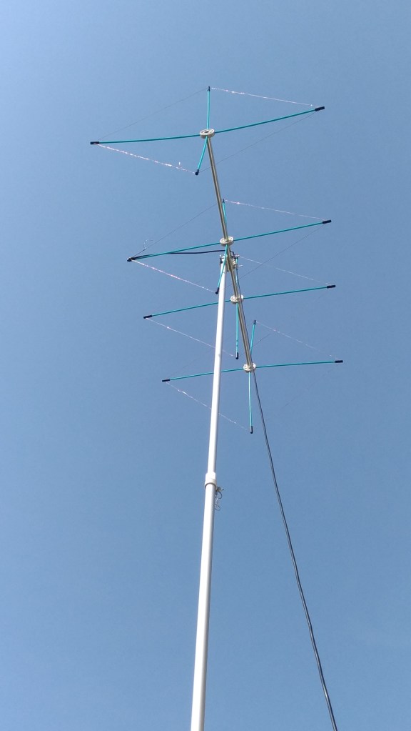 いつもコンテストにはお気軽参加な私としてはなかなかの成果です。12時ころまでCQを出したり呼び回ったり。12時台は局数が減ったので急いで昼食を食べ再開、15時までがんばりました。4エレCQと普段使いの2mサイズモービルホイップを切り替えて使いましたが、CQがあさっての方向を向いているときはモビホの方が強く入感することがありました。ビームを実感します。