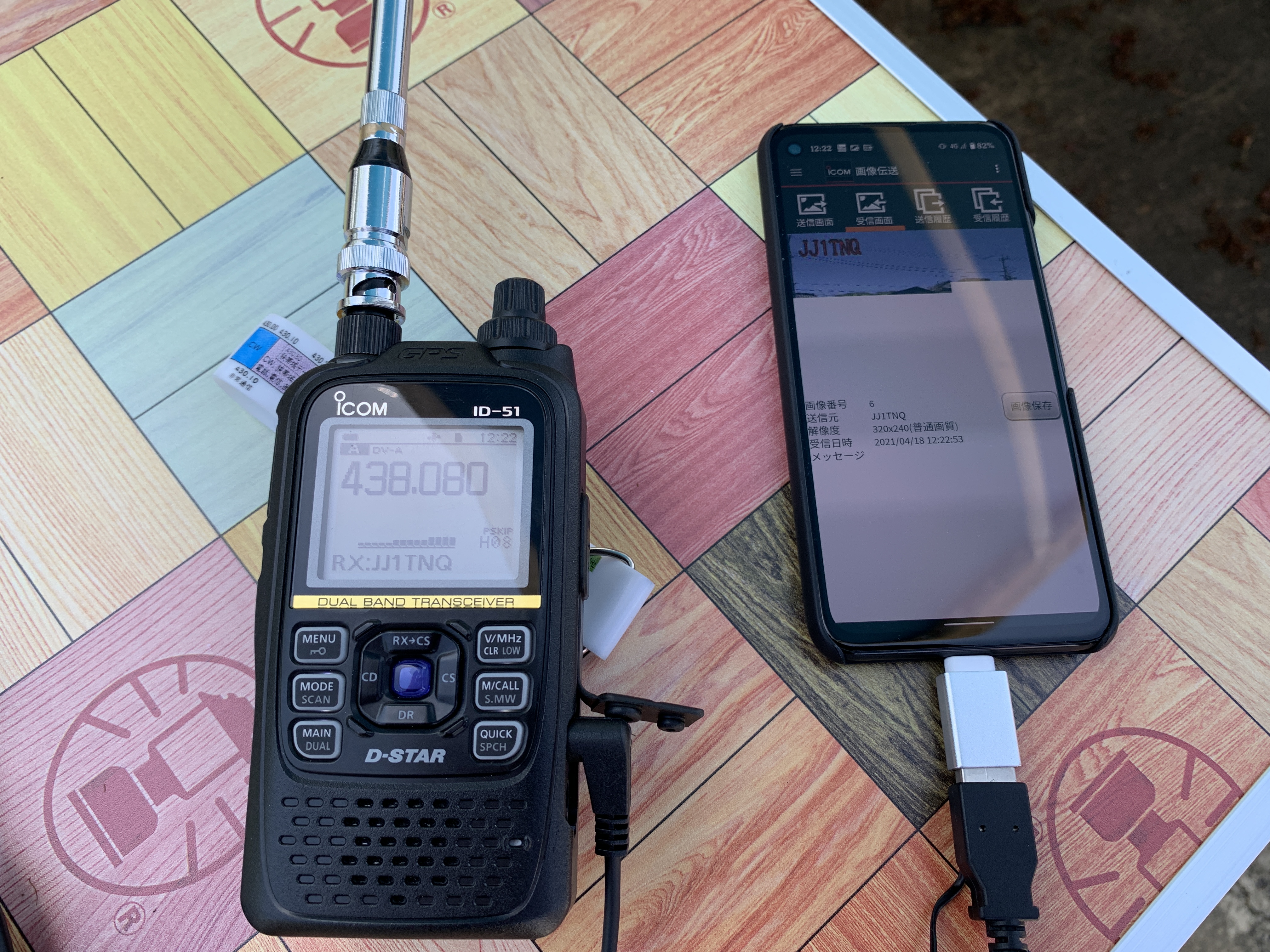 ひとつ目は、8J17CALLによるD-STARでのデータ通信。マルチジャンルのイベント「ハムらde無線フェア」らしく、チューリップまつりの会場から本会場「ゆとろぎ」までD-STARによる画像通信実験が行われると聞いていたので、飛び入り参加を計画。