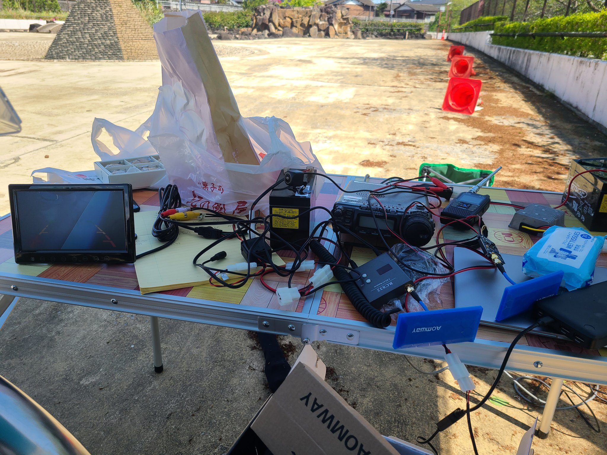 前日、機材やら体験局セットやら、わらわら準備中にこんな一幕が。やっててよかったアマチュア無線。