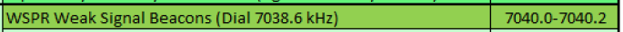 (2) 7038.6kHzで行われているWSPRとの関係も問題となりそうです(IARUでは、7038.6kHzはダイヤル周波数であり、実際にWSPRの信号が出ているのは「7040.0-7040.2kHz」なので、7037kHzでFT8の信号(7037-7040kHz)を出してもギリギリかぶらないと整理されているようですが、本当に大丈夫でしょうか。)。