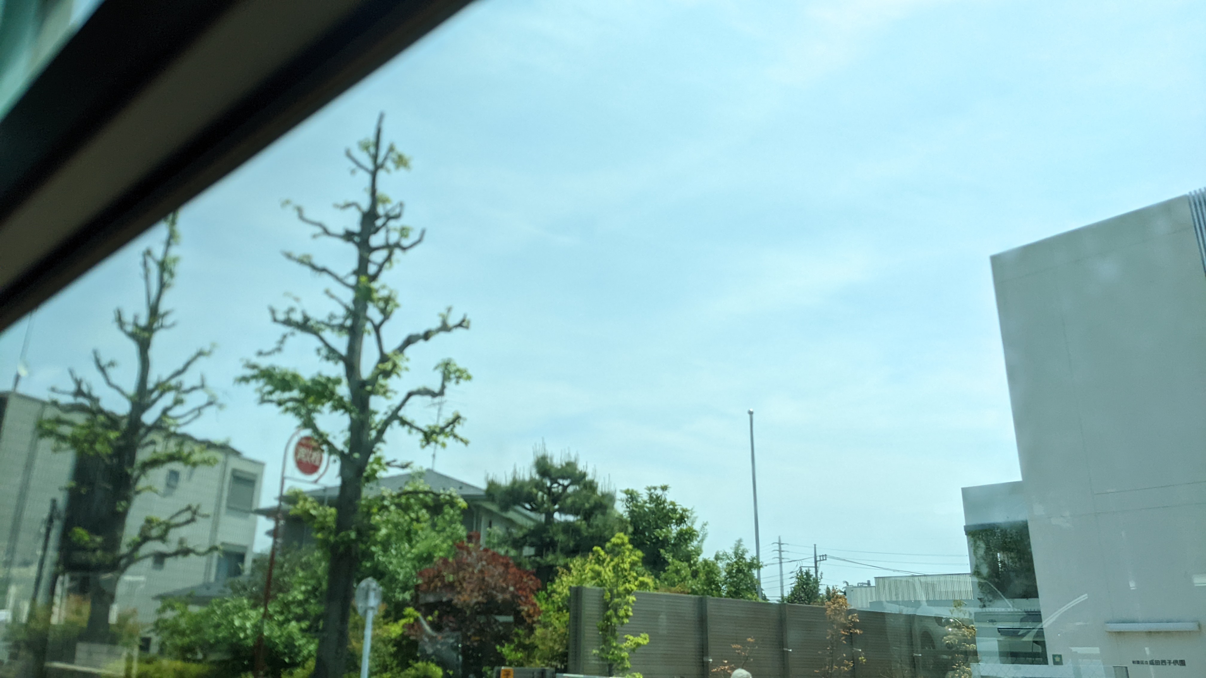 いつもは自宅から夕日が丘広場まで散歩がてら歩いて行くのですが、今日は機材が多いのでバスを使いました。いい天気。遠足みたいにワクワクしています。