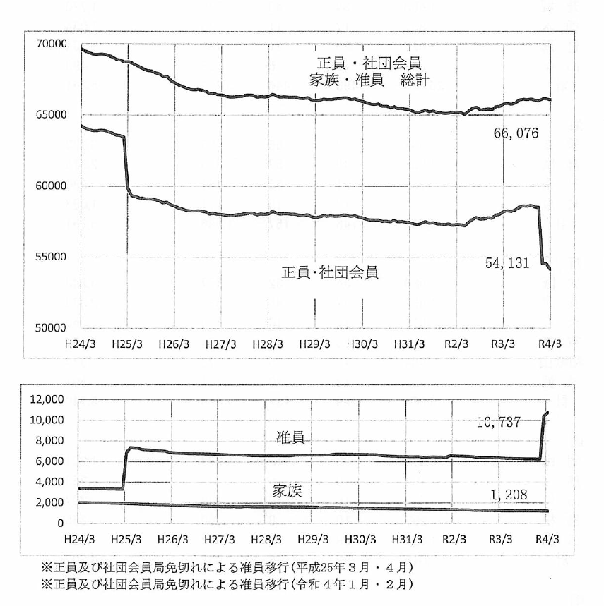 (2) 今年の会員増加数「288名」には、准員も含まれているが、今年1月の調査の結果、正員から准員に4000名以上も移行している。准員の中には、すでに逝去された方や行方不明の方、会費が必要がないので名前だけ残っている方も含まれていると思われる。准員を対象とした生存確認・会員継続意思を確認する調査は行っていないと理解してよいか。