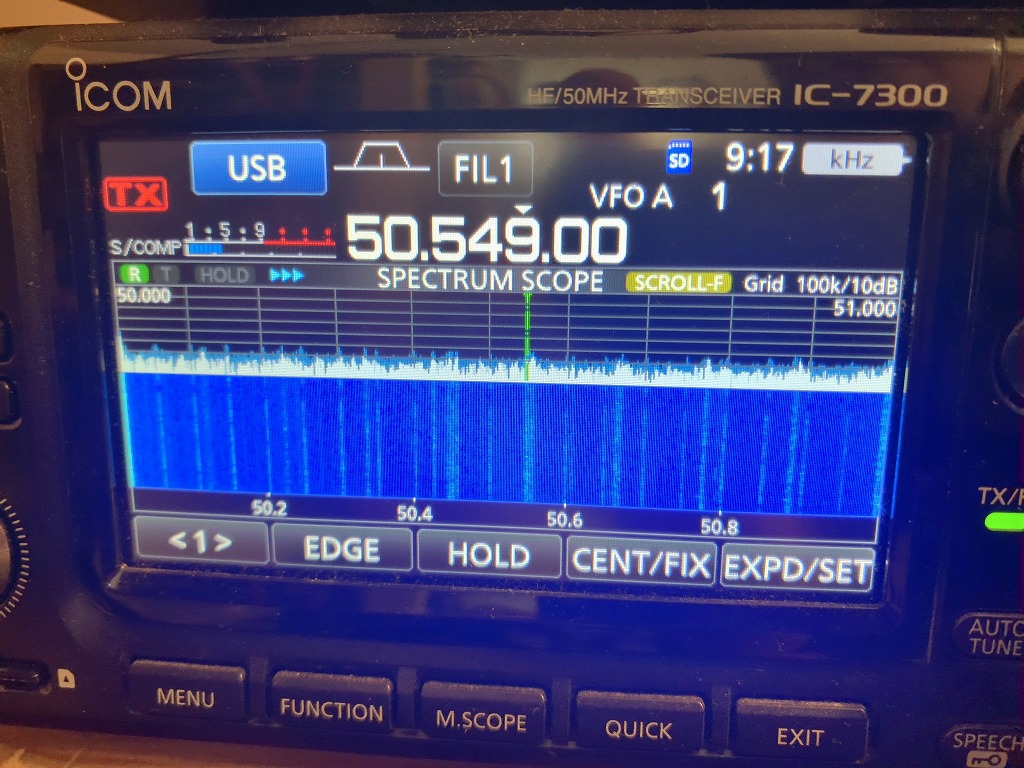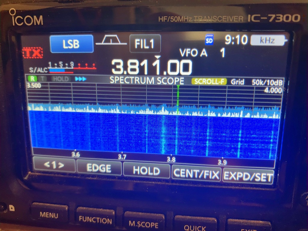 アマチュア無線帯であり、都内では最も盛んに使われている周波数帯であるが、残念ながら最近は、このバンドにも近隣の太陽光発電設備が発生していると思われるノイズが確認できる。