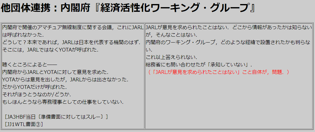 (山内感想)この回答には心底驚きました。JARLは、内閣府から完全に無視されていたということでしょうか。情けないです。