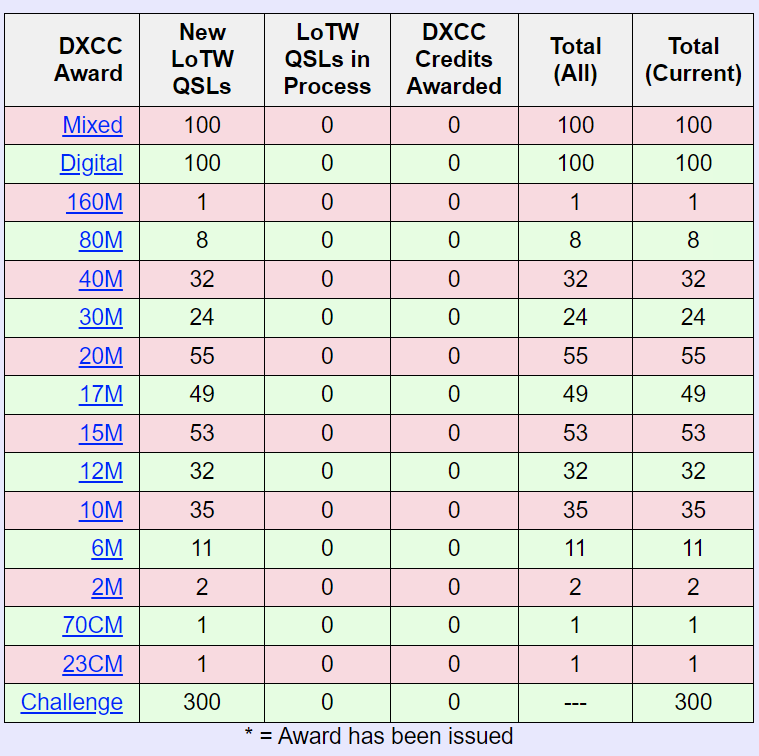 2023-03-212023-03-21 7K1BIB/YAMAUCHI, Takahiro MIX/DIGITALでDXCC100 先日、初めてできたLuxembourg。 LX1TI Luxembourg21.074/FT8ATNOでした。 pic.twitter.com/GSWIEuIya6— 7K1BIB, AC1AM 山内貴博(JARL社員2期目) (@7K1BIB) March 15, 2023 今日、LoTWでコンファームいただき、Mix/Digitalで100に達しました。 弱小設備でも”Century Club”の入り口に立つことができました。これも、2013年2月からこつこつ続けてきたJT65/FT8のおかげです。Hamlogのデータや、再開前の紙ログのデータは入れていません。こうなると、調べてみたくなりますね(笑)。 今後は、他のモードにも手を広げ、無理のない範囲で増やしていければと思っています。 (2023-03-21 記) 共有: クリックして X で共有 (新しいウィンドウで開きます) X Facebook で共有するにはクリックしてください (新しいウィンドウで開きます) Facebook いいね 読み込み中… 関連