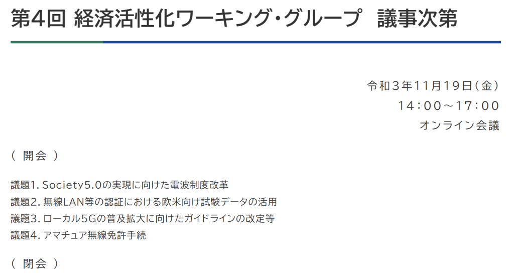 ところが、突如、思わぬ方向から伏兵が現れます。2021年11月19日に開催された内閣府の規制改革推進会議「経済活性化ワーキング・グループ」で、アマチュア無線免許手続が取り上げられたのです。