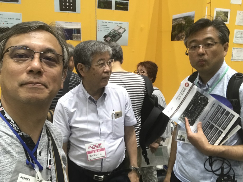 次に木下さんにお会いしたのは、おそらく2018年のハムフェアだったと思います。1枚の写真が残っています。木下さんらしい穏やかなお顔をされています。私がなんだか妙な顔をしているのは、リラックスしているからでしょう。木下さんは人をリラックスさせるような懐の深い方でした。