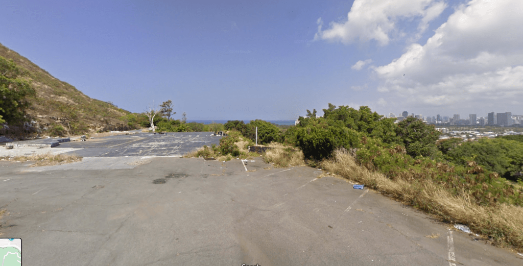滝を散策した日、9月11日の午後、ようやく無線運用の時間を確保できました。ホテルから車で15分ほどのDiamond Head State Preserve (K-6425) に行くことにします。もっとも、観光のメインルートでやるわけにはいきません。地図をにらむと、北の裾野、Diamond Head Roadから分かれる道の突き当たりに、アンテナを展開できそうな広場を見つけました。ちゃんと公園のエリア内。右の空中写真にピンを立てたあたりです。