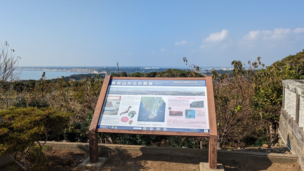 えいやと「地球の丸く見える丘展望館」の前、「日比友愛の碑」あたりに陣取ります。