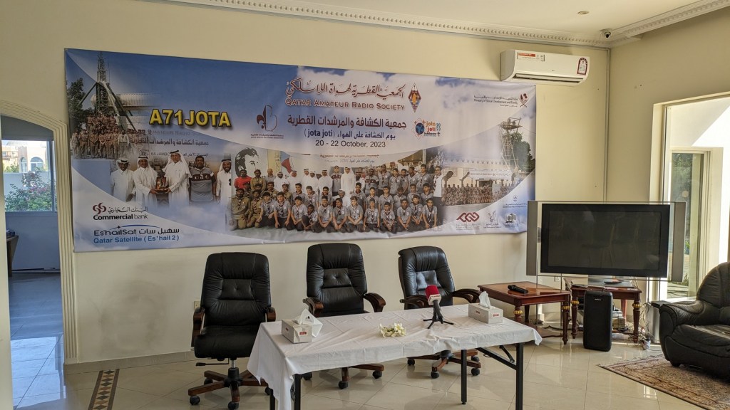 また、カタール滞在中の10月21日・22日は、CQ誌編集部が制定した初の試み「体験運用の日」でした。これをJARLとJARDが後援し、同日にボーイスカウト日本連盟が実施したJOTA-JOTI (Jamboree On The Air, Jamboree On The Internet)との連携も実現したことは、とても画期的なことでした。Qatar Amateur Radio Society本部でも、21日に現地のスカウトたちが参加するJOTA-JOTIが実施され、ほんの少し、準備段階だけ見学することができました。