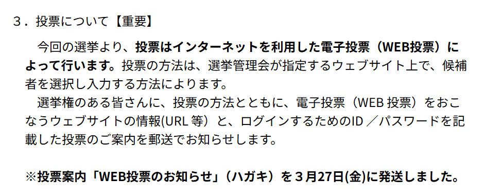 今回から、JARL選挙に電子投票が導入されました。WEB投票のお知らせハガキが、会員の皆様のお手元に届き始めたようです。